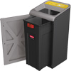 • Heavy-gauge steel recycler with a damage-resistant powder coat finish features contoured edges and magnetic connections that keep receptacles perfectly aligned to one another for a professional appearance